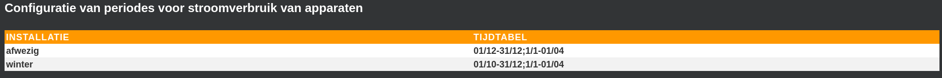 In dit demovoorbeeld onderscheiden we de tijdvakken "afwezig" en "winter". In de winter worden vaak andere apparaten meer of juist minder gebruikt.